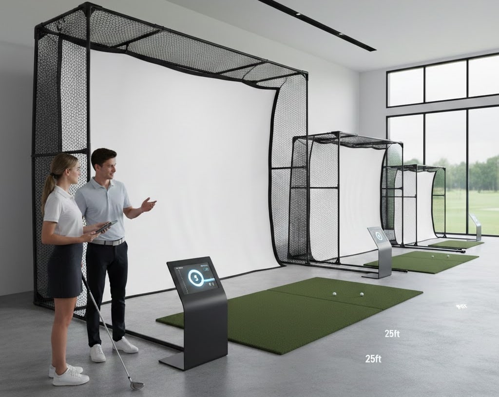 Golf simulators need tall ceilings. Nine feet is the sweet spot. It gives you room to swing freely without feeling…
