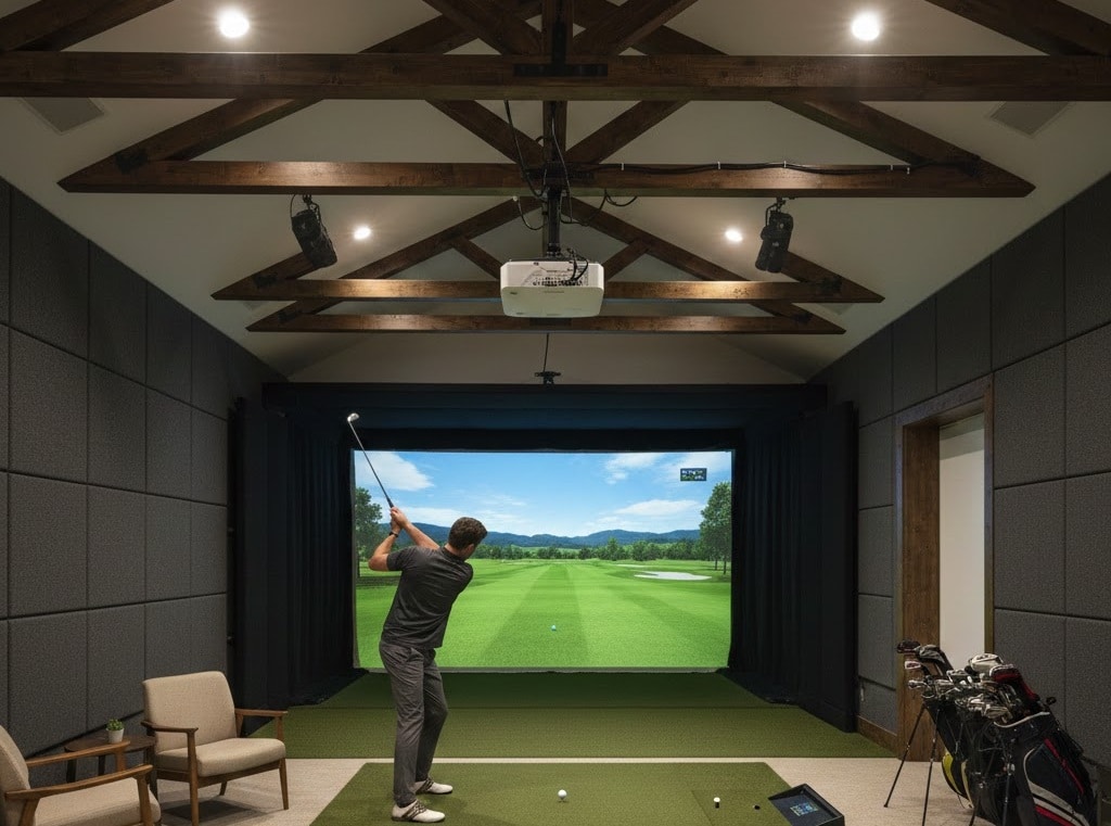 Getting your ceiling height right before you build saves you from serious headaches down the road. You don't want to spend thousands on a simulator only to chunk your driver into the ceiling every time you swing! Aim for 10 feet if you can manage it, but you can work with 8.5 to 9 feet if you're willing to adjust your setup. Measure twice, build once, your golf game will thank you.